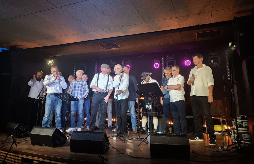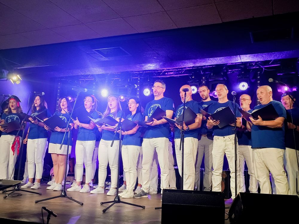 Pierwszym z zaproszonych gości był chór Majtki Prezesa – związany z szanownymi jubilatami zarówno przez osobę tytułowego „Prezesa”, czyli Grzegorza Kowalewskiego, jak i fakt, że dyryguje nim córka byłego Piorunersa Artura Czarneckiego. Zaśpiewali wiązankę klasycznych szant i współczesnych piosenek żeglarskich, w tym także „Dalej ciąg” z repertuaru samych The Pioruners. Mam wrażenie, że doskonała akustyka lokalu dodatkowo im się przysłużyła, bo brzmieli jeszcze lepiej niż zwykle.