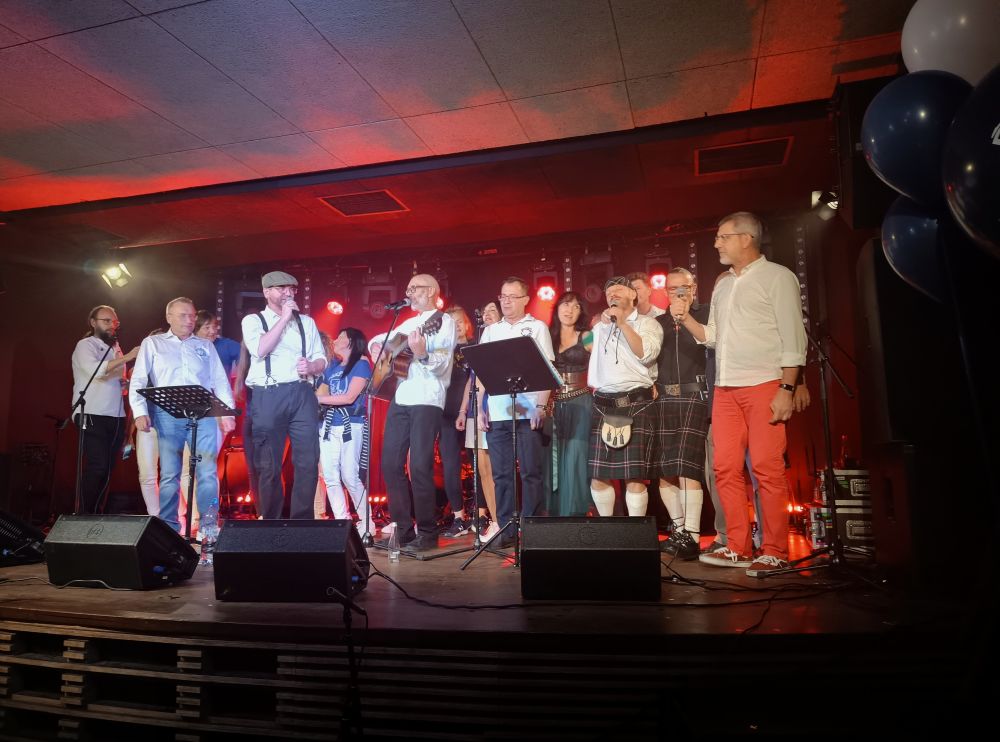 Kolejny gość, Inisheer, przyjechał aż z Kielc. Ktoś mógłby zapytać, gdzie Podlasie, a gdzie Świętokrzyskie. Nic jednak bardziej mylnego – i tu związek z jubilatami jest bardzo konkretny. Frontman zespołu Janusz Kasiak pochodzi bowiem z naszych stron i także śpiewał kiedyś z The Pioruners. Inisheer przywiózł ze sobą kilka niespodzianek. W części utworów towarzyszyli im wyśmienici tancerze z formacji Treblers, a początek i koniec występu uświetnił najprawdziwszy szkocki dudziarz (tylko imię jakieś takie irlandzkie – Patryk).