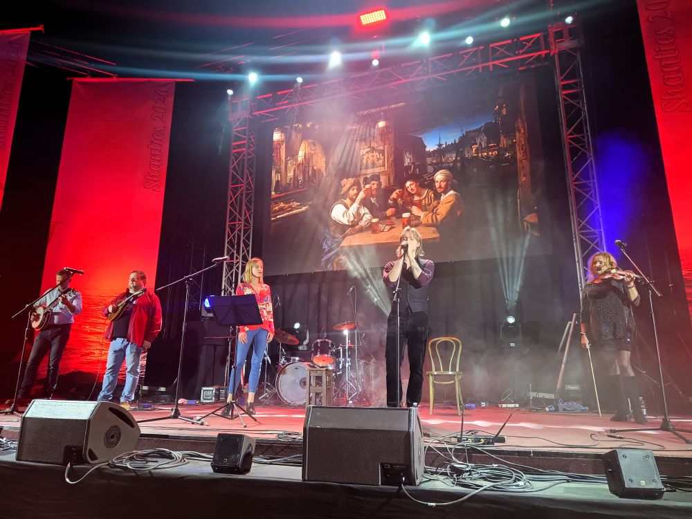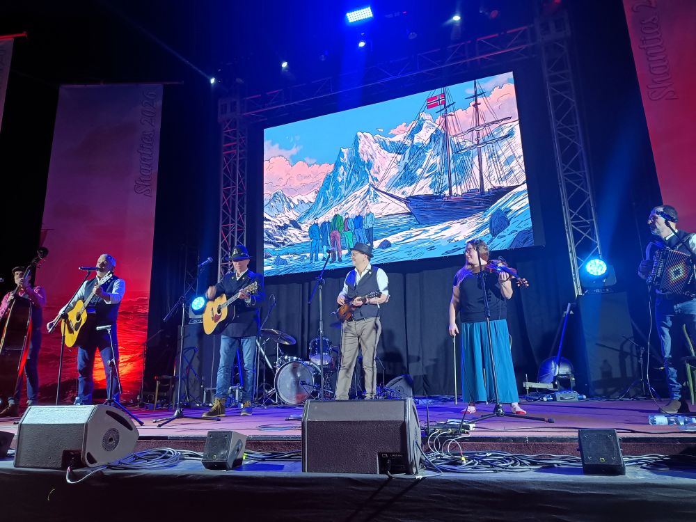 Jak zwykle na festiwal dotarłam dopiero na piątkowe koncerty, nie mogę więc wiele powiedzieć o koncercie balladowym w Radio Kraków ani jubileuszu EKT Gdynia, słyszałam jednak, że powrót do luźniejszej konwencji stojąco-skaczącej w Żaczku spotkał się z uznaniem uczestników. Dla mnie natomiast 45. „Shanties” zaczęły się koncertem zatytułowanym „Nasze bieguny”, prowadzonym przez Pawła Koniecznego i Michała Słowikowskiego. Biegunów rzeczywiście tam nie brakowało, zarówno jeśli chodzi o żonglerkę nastrojami (od energetycznych Mietków Folków po liryczną Trzecią Miłość), pochodzenie wykonawców (od zimnej północy, czyli Narviku, skąd przyjechał Groms Plass, po gorące południe… czyli w tym przypadku Śląsk i Banana Boat), jak i pełną amplitudę emocji. Najpiękniejszą niespodzianką tego koncertu był dla mnie „Wojownik Grom” wykonany tym razem nie jak zwykle w dwóch trzecich po norwesku, ale w całości po polsku przez towarzyszącą Groms Plass Jolę Gacką (Trzecia Miłość). Choć bardzo lubię też starą wersję i zawsze jakoś tak dodatkowo wzruszało mnie, kiedy Norwegowie wkładali całe serce i skupienie w zaśpiewanie fragmentów polskiego tekstu, to świetnie było wreszcie zrozumieć dokładnie wszystkie słowa. Bardzo podobały mi się też towarzyszące koncertowi grafiki autorstwa Krzysztofa Chalika przedstawiające każdy z zespołów na tle arktycznych krajobrazów.